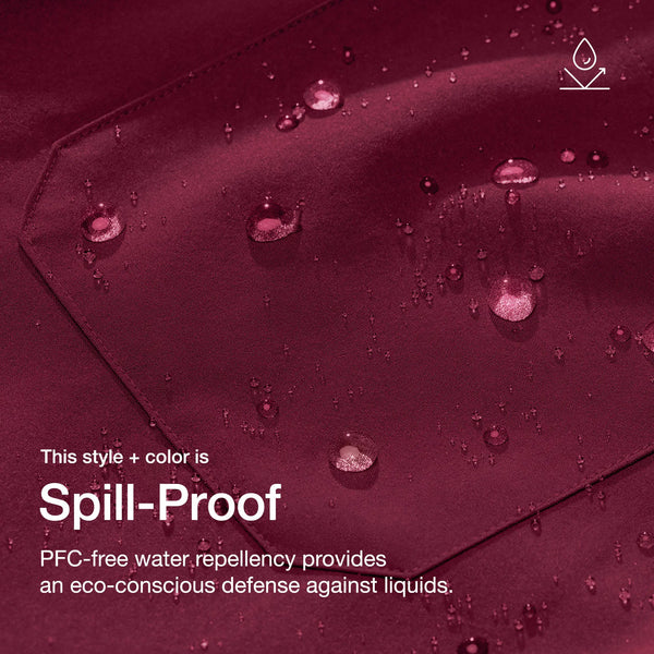 - PFC-free water repellency defends against spills and splatters