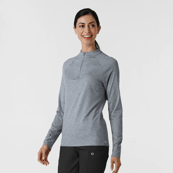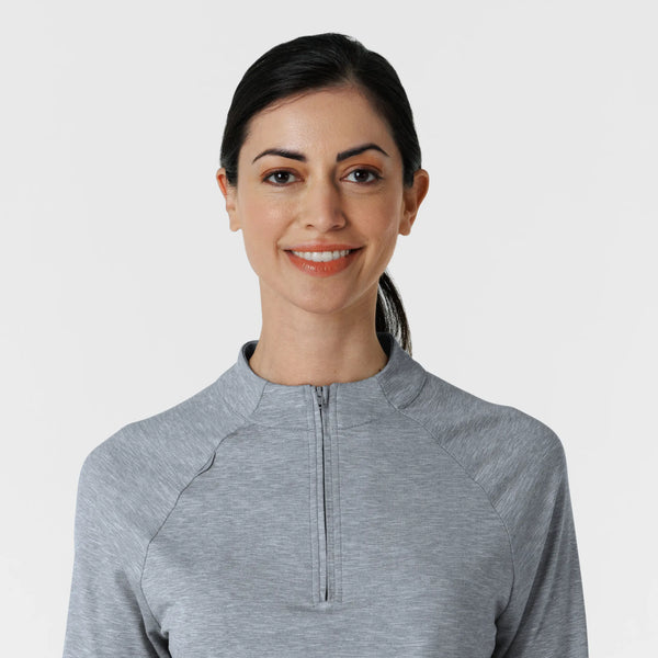 Wink Women's Watch Window Quarter Zip Scrub Top - Grey Heather