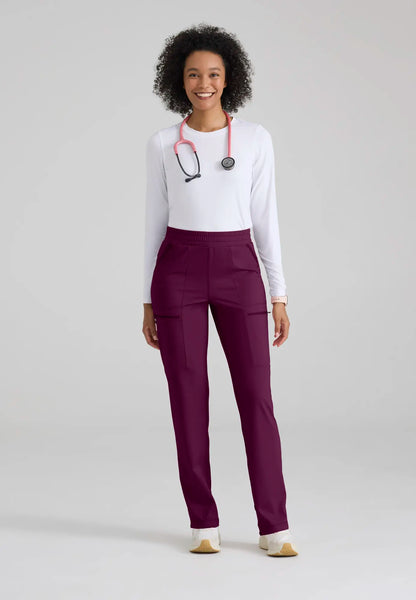 Experience the perfect combination of form and function with our Momentum Knit Pant! Crafted with you in mind, these high-rise scrubs feature a flat front waistband with a convenient drawcord for the perfect fit. With a straight leg design and six pockets in total—including two slanted front pockets and two cargo pockets with hidden zippers—these pants blend style with practicality. Plus, their antimicrobial properties keep you fresh and confident throughout your shift.