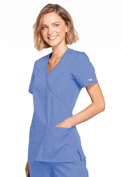 Cherokee Women's Mock Wrap Top - Ceil Blue in the selected size is due to high demand backordered. We will ship it as soon as possible (shipping is normally within 5 to 10 days).