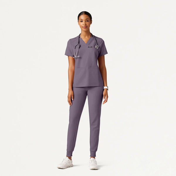 Jaanuu Women's Helia Slim Notched V-Neck Scrub Top - Titanium