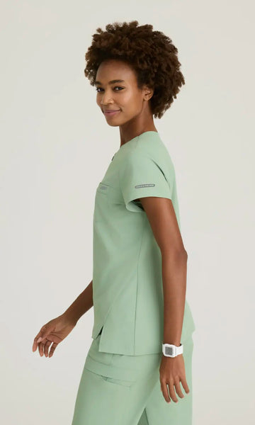 This eco-friendly top isn't just another boring scrub - it's a game-changing addition to your wardrobe that will have you feeling confident and comfortable, no matter how busy your day gets. Crafted from premium, breathable fabric, it keeps you cool, collected, and ready to tackle any challenge that comes your way.