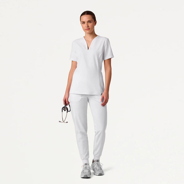 Jaanuu Women's Calix Fit & Flare Scrub Top - White