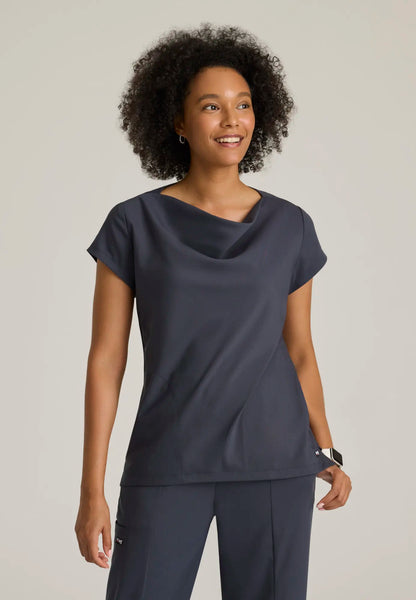 This chic cowl neck top features cap sleeves and a trendy high-low hem, making it perfect for any healthcare setting. With two spacious on-seam waist pockets, you'll have easy access to all your essentials. Crafted from super-soft, spandex-stretch moisture-wicking fabric, it keeps you feeling fresh and comfortable throughout your shift. Plus, the antimicrobial finish helps reduce mold, mildew, and odor, while the soil-release fabric ensures you look sharp no matter what.
