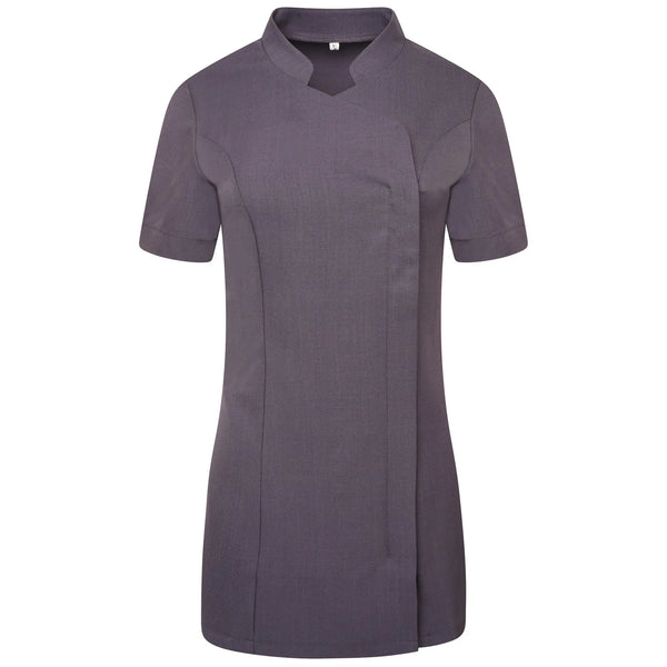 A uniquely modest asymmetrical spa & salon tunic with a concealed zip fastening and additional stud closure for security. Featuring V-notches at the sleeves and vents at the side seam for ease of movement throughout your shift. *Please note, the Lea Tunic sizing runs smaller than usual.