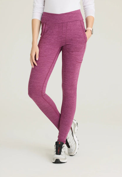 The Strive Legging– your go-to medical scrub for comfort and functionality! Featuring six pockets in total, including front and back patch pockets and a double cargo pocket, you’ll have plenty of space for your essentials. The overlap front waistband and mid-rise slim fit provide a flattering and secure fit, while the super-soft, four-way stretch fabric wicks away moisture to keep you comfortable all day. Made with sustainable fabric from five recycled bottles per garment, these scrubs are as kind to the planet as they are to your skin.