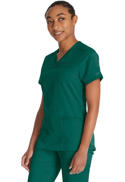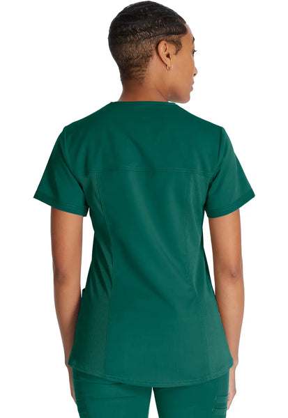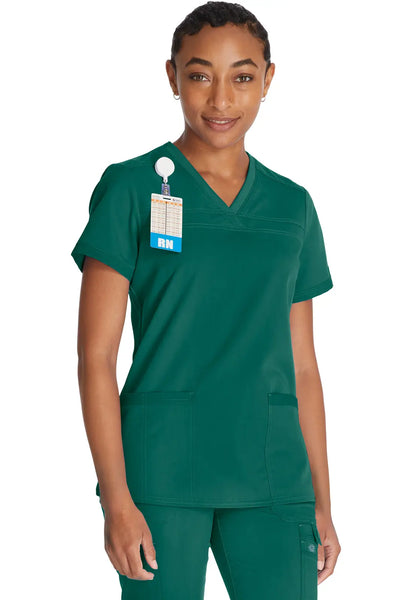 Dickies Women's Balance V-Neck Top With Rib Knit Panels - Hunter Green