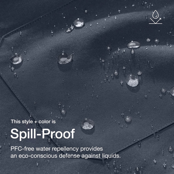 - PFC-free water repellency defends against spills and splatters