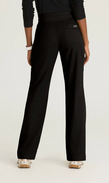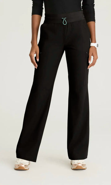 The Explore pant - your go-to for unbeatable comfort and style. Featuring 5 pockets, including cargo pockets and a back pocket, this pant keeps your essentials organized and within reach. The classic mid-rise fit and fit & flare silhouette create a polished look, while the jersey knit waistband with inside bungee drawcord ensures a personalized, secure fit.