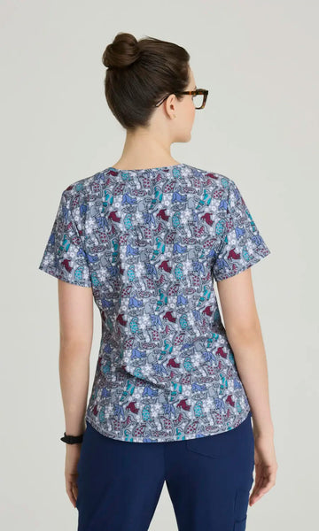 Your favorite Skechers by Barco scrub top, now with sketches of your favorite furry friends! With several cheerful colors and prints to choose from, you can stay comfy and make a statement during your workday.