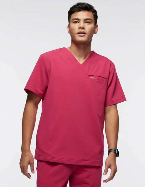 Jaanuu da Uomo 4-Pocket V-Neck Scrub Casacca - Electric Magenta