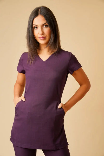 This functional spa & salon tunic is perfect for those who prefer a classic uniform, with a flattering v neckline, notch sleeves for extra movement, and two handy side pockets.
