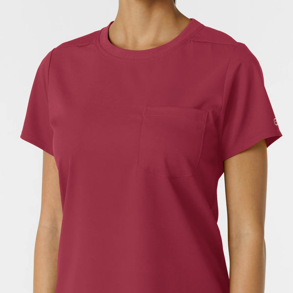 You do your best work when you're comfortable. That's why this women's tee is your everyday go-to. The modern fit skims the body for a fit that's not too tight or too loose. Soft fabric feels great against your skin, and it's made with just enough stretch to allow you to bend, reach and twist as you move through your shift. Side hem vents give you extra mobility for turning patients or pulling supplies from hard-to-reach shelves. The high-low hem offers full coverage and lets your scrub top drape easily over your pants. This tee layers well under your scrubs or can be worn on its own for a clean-lined look. You may even find yourself reaching for it on your days off. A loop on both shoulders gives you options for wearing your badge. A chest pocket gives you an easy place to store pens, cards or your phone.