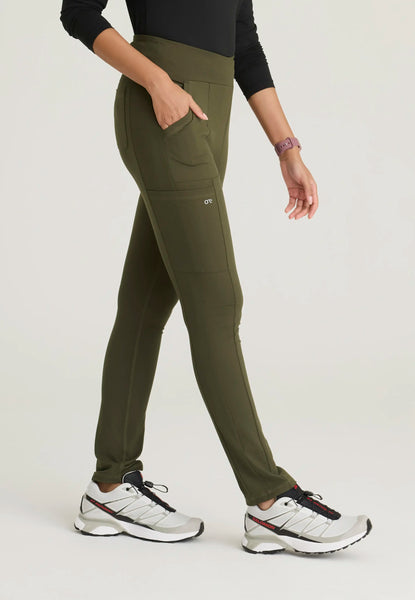 The Strive Legging– your go-to medical scrub for comfort and functionality! Featuring six pockets in total, including front and back patch pockets and a double cargo pocket, you’ll have plenty of space for your essentials. The overlap front waistband and mid-rise slim fit provide a flattering and secure fit, while the super-soft, four-way stretch fabric wicks away moisture to keep you comfortable all day. Made with sustainable fabric from five recycled bottles per garment, these scrubs are as kind to the planet as they are to your skin.