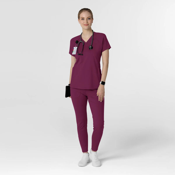 Wink Dames Knit Flex-n-Reach V-Neck Raglan Scrub Top - Wijnrood