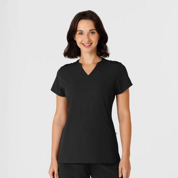 Wink Dame Flex-n-Reach Shoulder Panel V-Neck Scrub Topp - Svart