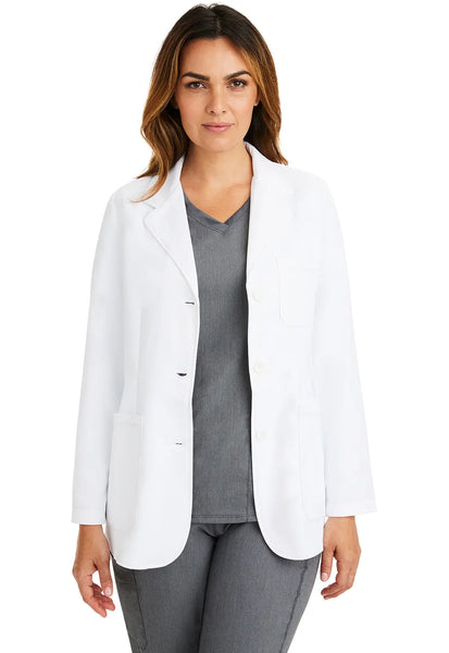 This minimalist consultation-length coat has all the classic features of a lab coat, from the notched lapels to the tailored fit, along with the soft and stretchy fabric that Healing Hands is known for.